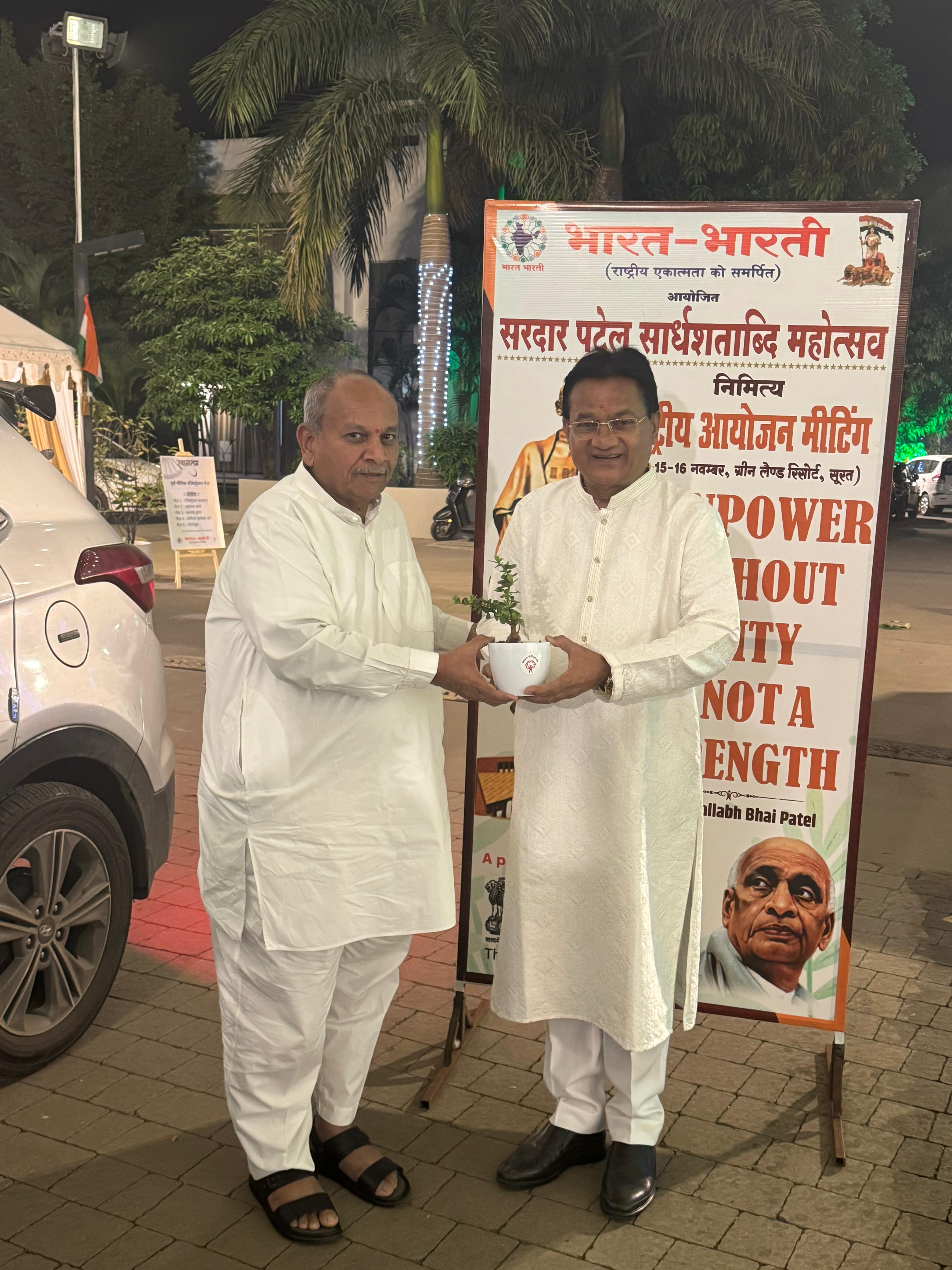 ગત રાત્રે આયોજિત મુખ્ય સ્વાગત સમારંભમાં ભારત ભારતીના રાષ્ટ્રીય અધ્યક્ષ શ્રી વિનયજી પત્રાલેએ વિશેષ ઉપસ્થિત 150 પૂર્વ સૈનિકો, તેમની પરિવારની વીરાંગનાઓ સહિત કુલ 200 જેટલા મહાનુભાવોનું ઉત્સાહભેર સ્વાગત કર્યું.સુરત સિટી પોલીસ કમિશનર શ્રી અનુપમ ગેહલોતની પ્રેરણાદાયક હાજરીઆ પ્રસંગે સુરત સિટી પોલીસ કમિશનર શ્રી અનુપમ ગેહલોતએ માનનીય ઉપસ્થિતિ દર્શાવી.તેમણે જણાવ્યું કે—“IPS અધિકારીઓને સૈન્ય સાથે સંકલન, શિસ્ત અને નિર્ણયક્ષમતાની તાલીમ મેળવવી અત્યંત જરૂરી છે. સુરતમાં આવી મોટી સંખ્યામાં અનુભવી પૂર્વ સૈનિકો આવ્યા છે, જે શહેર માટે ગૌરવની બાબત છે. ભારત ભારતીના શૌર્ય સંસ્કારના પ્રયાસોને હું બિરદાવું છું.”
