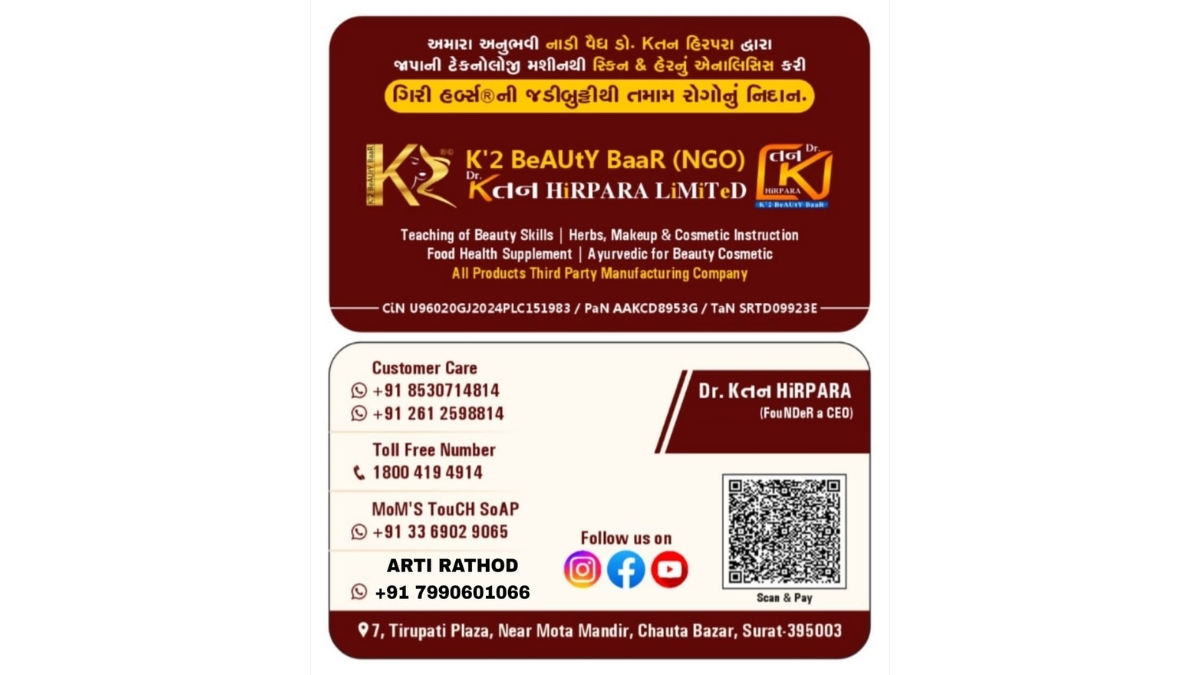 સુરત (ગુજરાત) [ભારત], જાન્યુઆરી 27: વિશ્વ બજાર તરફ દ્રષ્ટિ ફેરવતી આ કંપનીના મૂળ ખૂબ જ ઊંડા અને મજબૂત છે. પિતામહ, પરદાદા દાદા, પાસેથી વારસાગત આવેલી બીજ કે છોડ આજે પણ વટવૃક્ષ બન્યું છે જેની પાછળ 75 વર્ષથી વધુ સમય નું દાન સમાવિષ્ટ છે.• K2 બ્યુટી બારના MOM’S TOUCH ઓર્ગેનિક સાબુ નું નવું લક્ષ્ય #IPO અને વૈશ્વિક બજાર• K2 બ્યુટી બાર (NGO) અને ડો. Kતન હિરપરા લિમિટેડ કંપની (સુરત)હોમમેડ કે ઓર્ગેનિક ગણાતા રસાયણહીન સુસ્વાસ્થ્યના હેતુથી બનાવાતા જડીબુટ્ટી, પાંદડા, ફળોના, અર્કના મિશ્રણથી તૈયાર ઓર્ગેનિક સાબુના વારસાને વધુ ઉચ્ચ ગુણવત્તા આપી ગામડા ગામથી સુરત સુધી પહોંચાડવાનો શ્રેય ડો. Kતન હિરપરા ના ફાળે જાય છે. જેમણે દાદા – પિતામહના આ નાનકડા ગૃહ ઉદ્યોગને વિશ્વ સ્તરે પહોંચાડવા અથાર્ગ મહેનત અને પરિશ્રમ કરી તમામ લાયસન્સ હસ્તગત કર્યા તેમજ આજના સમય અનુરૂપ બીમારી, સ્કીન રેશિસ, હેર ઈશ્યૂસ ને ધ્યાનમાં રાખી ઉપયોગી તેમજ ઓર્ગેનિક એવા 350 થી વધુ વેરાઈટીના હોમમેડ સાબુ MOM’S TOUCH બ્રાન્ડ અંતર્ગત લોકો સુધી પહોંચાડ્યા છે.